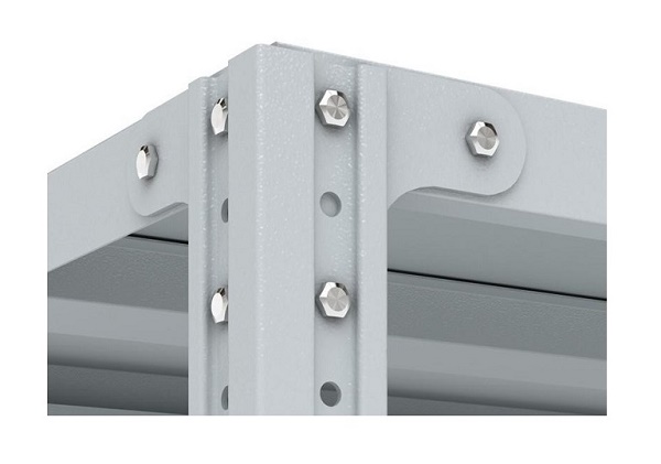В комплект стеллажа входит: 4 стойки МС-500, 3 полки МС-100, комплект крепежа (метизы, 16 - Г-образных усилителей стоек, 4 пластиковых подпятника).