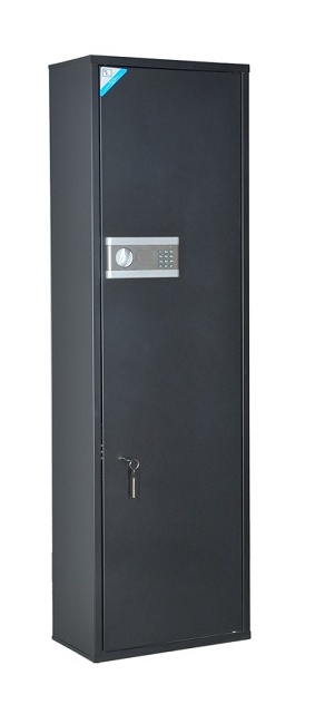 Шкаф оружейный ОШН-8Э предназначен для хранения оружия, патронов и принадлежностей. Шкаф соответствует требованиям МВД России. Толщина металла корпуса и двери 1 мм. Вместимость сейфа 2 ствола. Максимальная высота ствола 1335 мм. Сейф комплектуется полками, трейзером, пластмассовыми ложементами, ковриком. Дверь сейфа закрывается кодовым электронным и  ключевым замком ЗАО "Про-Сам" г. Рязань. На задней стенке корпуса расположены два отверстия для крепления. Цвет - черный