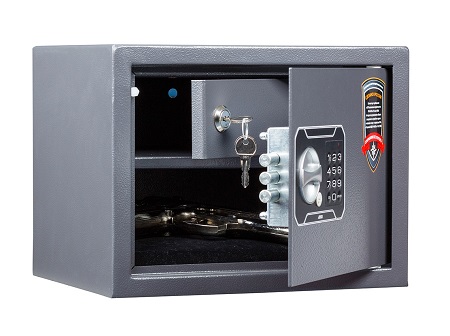 Сейф пистолетный ТТ-23 EL предназначен для хранения огнестрельного оружия. Соответствуют требованиям ст.59 Постановления правительства РФ № 814 от 21 июля 1998 года "О мерах по регулированию гражданского и служебного оружия и патронов к нему на территории РФ" Толщина корпуса 2,8 мм и двери 1,2 мм. Комплектуется патронным отделением (ВхШхГ, мм) 112x297x195. В сейф установлен кодовый электронный замок PLS-3 с аварийным мастер ключом Цвет- графит структурированный (RAL 7024)
