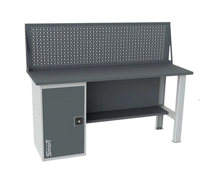 Дополнительно на верстак можно установить: тумбу-пенал SMART, тумбы - SMART 1-1, SMART 1, SMART 4, ящик подвесной SMART, панель перфорированную (экран) SMART, комплект освещения SMART, аксессуары на экран SMART, возможна установка системы мастер ключ.