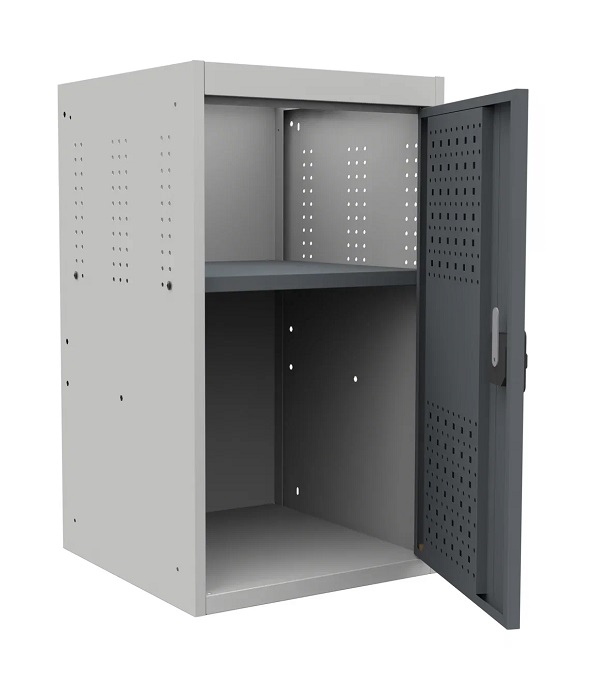 В комплектацию верстака входит: столешница 1760 SMART, полка/стенка 1100 SMART, тумба SMART 1, опора SMART, одна перфорированная панель (экран) SMART. Столешница выполнена из фанеры 27 мм со стальной окрашенной накладкой 1,2 мм. Опора сварная выполненная с применением высокоточного сварочного оборудования. Имеет нижнюю перекладину для усиления устойчивости конструкции. Размер опоры (ВхШхГ): 835х500х135 мм. Тумба SMART 1 комплектуется одной дверью и одной полкой. Закрываться ключевым замком с поворотной ручкой. Секретность замка 2000 комбинаций (2 ключа в комплекте). Внутренняя стенка двери имеют универсальную перфорацию для размещения навесных элементов. Перфорированный экран SMART предназначен для размещения различного типа крючков и держателей инструмента. Шаг квадратной перфорации (10 мм) - 38х38 мм, круглой (7 мм) - 25х38 мм. Возможна смена стороны открывания двери тумбы. Цвет верстака: опора, корпус тумбы - серый Ral 7035, столешница, полка/стенка, лицевая панель тумбы - графит Ral 7016. Поставляется в разобранном виде.