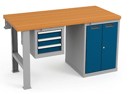 Слесарный верстак ВС-150-05ЦФ предназначен для промышленных предприятий и тяжелого машиностроения. Все элементы сварные. Максимальная равномерно распределенная нагрузка на верстак – 2 000 кг. Столешница производится в трех вариантах: — массив бука 40 мм (БУК) — фанера 40 мм (Ф) — фанера 40 мм с предустановленным стальным листом 3 мм (МФ). Тумба ВС-010 укомплектована перфорированными экранами на боковых стенках. Дверцы закрываются на замок EURO-LOCKS (Германия, 2000 комбинаций). В Тумбу можно установить Полки для Тумб ВС-010 (приобретаются отдельно). Максимальная нагрузка на полку тумб — 200 кг. Подвесная тумба ВС-003 имеет 3 выдвижных ящика. Ящики запираются на единый центральный замок EURO-LOCKS (Германия, 2000 комбинаций) и оснащены системой антиопрокидывания. Максимальная нагрузка на ящик — 50 кг. Металлические элементы верстаков окрашены эпоксидной порошковой краской, устойчивой к механическим воздействиям и агрессивным жидкостям. Ящики, дверцы тумб и стойки экрана – цвет антрацит серый RAL 7016, остальные элементы – цвет серый RAL 7038. Полка для тумбы (приобретается отдельно) - 1 057р.