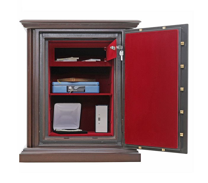 Valberg Гарант Евро 67 Т EL Д (дуб) предназначен для сохранности документов и ценностей при пожаре и взломе. Рекомендованная сумма хранения денег до 6,5 млн. руб. для физических лиц и до 2 млн. руб. для юридических лиц. Устойчивость к взлому по ГОСТ Р 50862-2017: класс 2 (ГОСТ Р). Огнестойкость: ГОСТ Р 57384-2017: класс 60Б (ГОСТ Р). При заливке двери и корпуса сейфа используется запатентованная система армирования огнестойкого бетона. Толщина защитного слоя двери - 33 мм, общая толщина двери - 105 мм. Толщина боковых стен -77 мм, задней стенки - 51 мм. В сейф установлена: 3х сторонняя ригельная система запирания; защита замка и ригелей от высверливания и выбивания; система блокировки ригельного механизма при выбивании замка; тепловой замок, усиленный огнестойким уплотнителем. Сейф Valberg Гарант Евро 67 Т EL Д (дуб) закрывается электронным кодовым замком PS610/E036 (под заказ возможно установить - ключевой замок KABA MAUER; биометрический кодовый замка PS610FD/E36FD). Предусмотрена возможность анкерного крепления к полу (анкерный болт в комплекте). Внешняя отделка выполнена из натурального дерева, внутренняя отделка из бархата. Покрытие ручек: матовый хром или золото. Цвет: корпус - №11-А, внутренняя отделка - С-1059. Возможны другие варианты окрашивания.