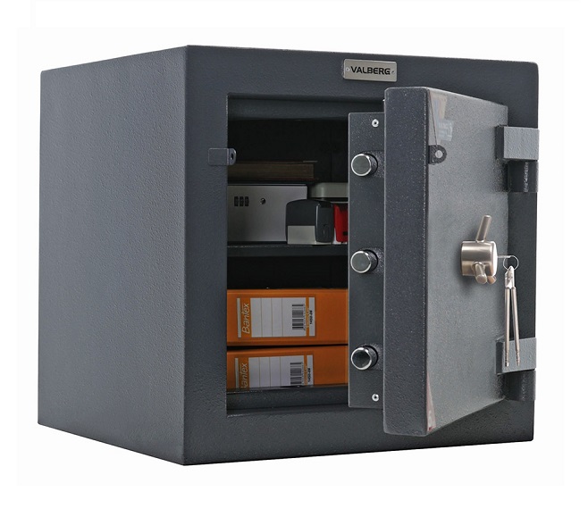 Металлические взломостойкие сейфы Форт-50 предназначены для защиты документов, ценностей, а также наркотических средств и психотропных веществ от несанкционированного доступа, или же взлома. Такие сейфы устанавливают в медицинских учреждениях, исследовательских институтах, банковских и финансовых организациях, в офисах и прочих коммерческих, а также и в жилых помещениях. Все сейфы данной серии одобрены ассоциацией Российских производителей и поставщиков сейфов и банковских систем безопасности. Устойчивость к взлому данной модели по ГОСТ Р 50862-2012 - 2 класс РСБ-С и класс 3 по ГОСТ Р. При заливке двери и корпуса используется запатентованная система армирования бетона, также запатентованная многослойная защита стен и дверей сейфа и трехсторонняя усиленная ригельная система запирания. Кроме того у данного сейфа предусмотрена защита замков и ригелей от высверливания и выбивания, система блокировки ригельного механизма при выбивании, а для контроля доступа в коммерческих помещениях - устройство для опечатывания. Толщина защитного слоя двери составляет впечатляющие 50 миллиметров, общая толщина двери - 100 миллиметров, а толщина боковых стенок - 55 миллиметров. Модель Valberg Форт-50 комплектуется полкой и ключевым замком KABA MAUER с тремя ключами в комплекте, кроме того есть и модель с электронными замками. Цвет сейфа - структурированный графит, в днище сейфа предусмотрено наличие анкерного крепления к полу, а анкерный болт поставляется в комплекте. Опционально - установка трейзера в сейф при необходимости.